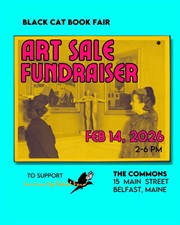 There’s nothing more romantic than mutual aid! Bring your sweeties to the Black Cat Book Fair Art Sale fundraiser, raising money for the Community Relief Fund of Maine, who provide critical funds to people impacted by ICE. Right now their need for funds is great and urgent, as is our need to gather in community.
