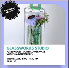 Join us on Earth Day and create a unique glass vase for flowers or use the available glass to express your own creativity in this fused glass class. Have fun learning how to work with different types of glass in this 2 and ½ hour workshop! Each student will learn to cut and shape sheet glass using both hand tools and bit grinders. Your unique pocket vase will be fired to a contour fuse, creating a textured work of art to display a small bit of fresh cut flowers. Your beautiful creation will be available for pick-up the week following the class.