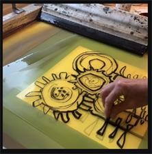 Painting and drawing put together, silkscreen monotype is a great way of trying out printmaking for the first time. Any flat surface can be printed on to make colorful one of a kind monotype prints, including fabric. This process is quick, simple and open to all—no experience necessary!